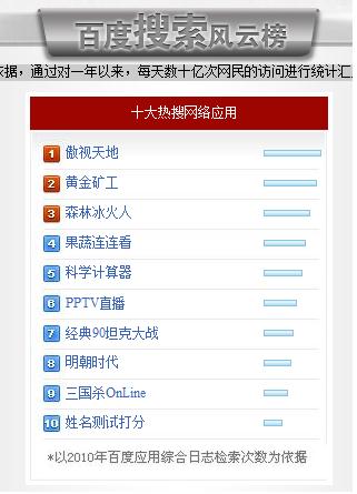 日前的公布的2010百度十大熱搜網絡應用(hot.baidu.com),美名騰姓名測試榜上有名。