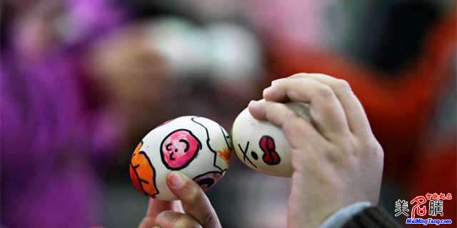 立夏這日,人們煮好雞蛋,有的地方還特地用紅茶或核桃殼煮蛋,稱“立夏蛋”。將蛋放入用彩線編織的蛋套中,相互饋送?;驋煸诤⒆有厍?,或掛在帳子上。小孩子們斗蛋為戲,以蛋殼堅(jiān)而不碎為贏。